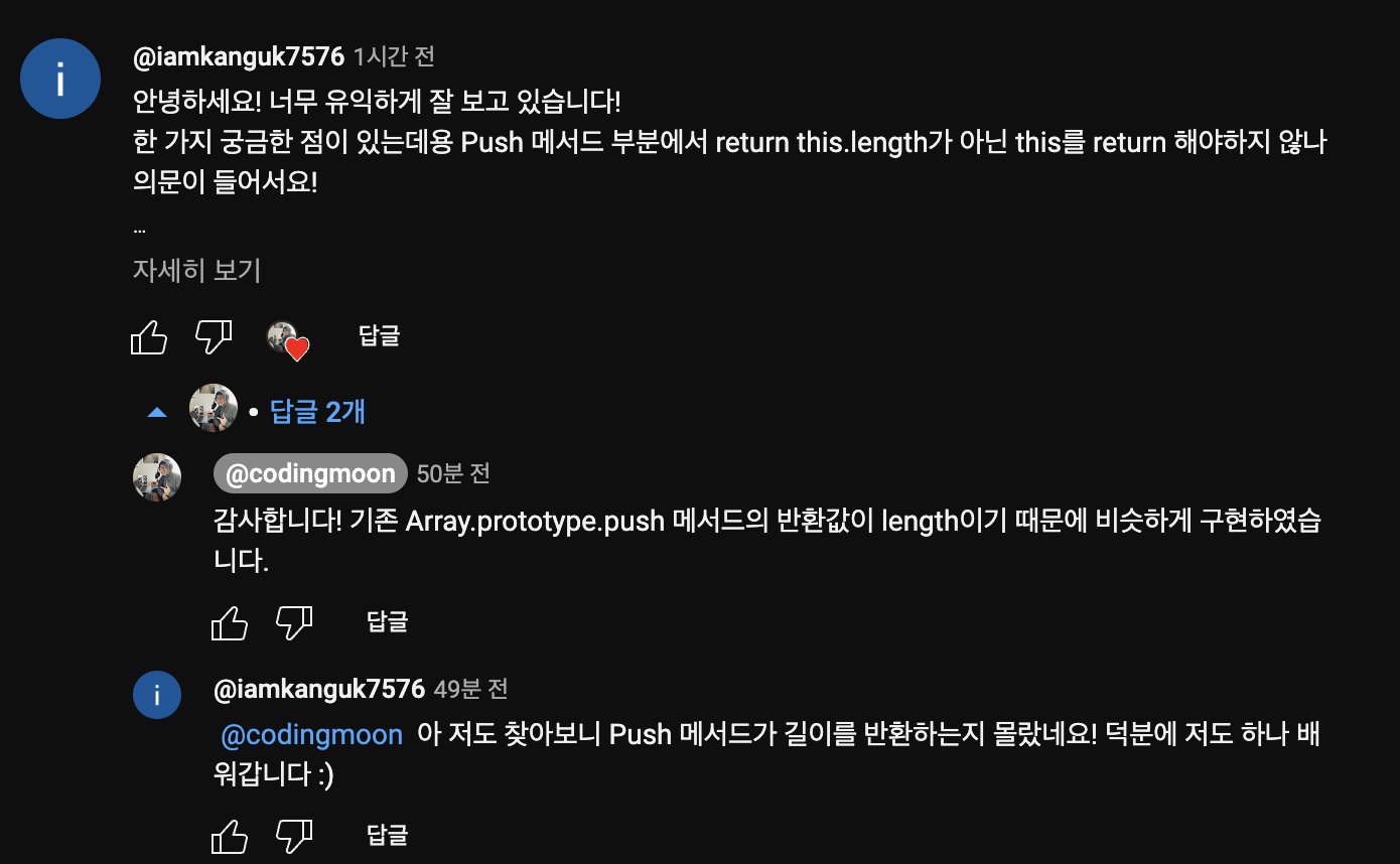 Push 메서드가 length를 반환한다는 것을.... 코딩문님 답글을 통해 알아버렸다는..! 허허..