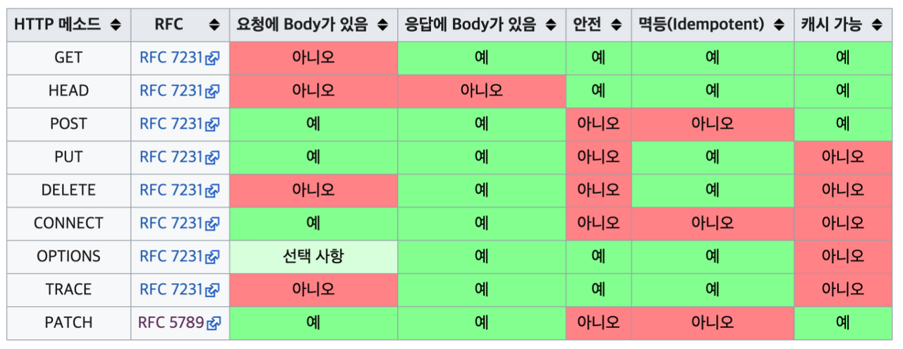 - POST: 멱등하지 않다. 두 번 호출하면 같은 결제가 중복해서 발생할 수 있기 때문이다.